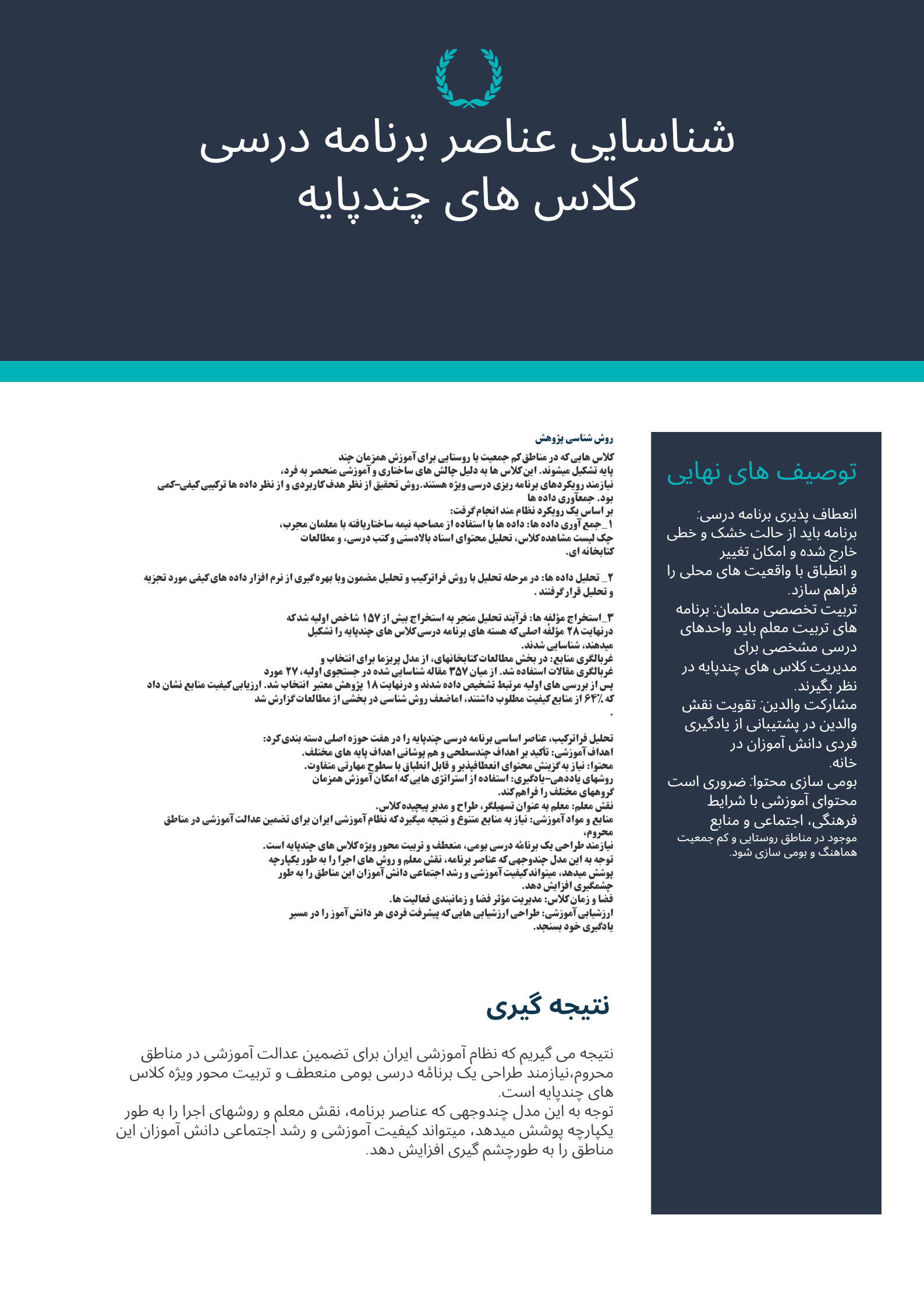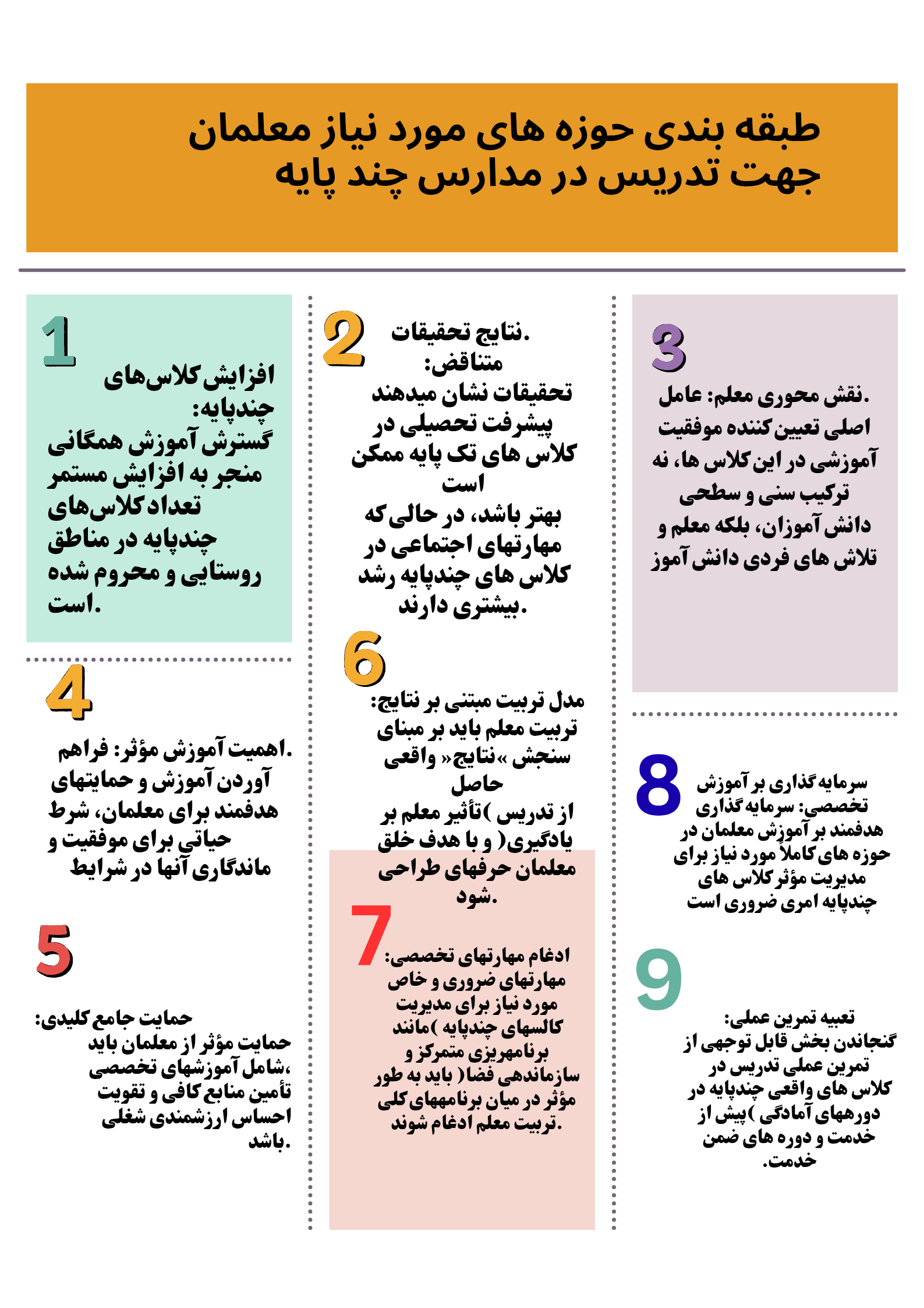 طبقه بندی حوزه مورد نیاز معلمان جهت تدریس در مدارس چند پایه . حمیدرضا دریانوش